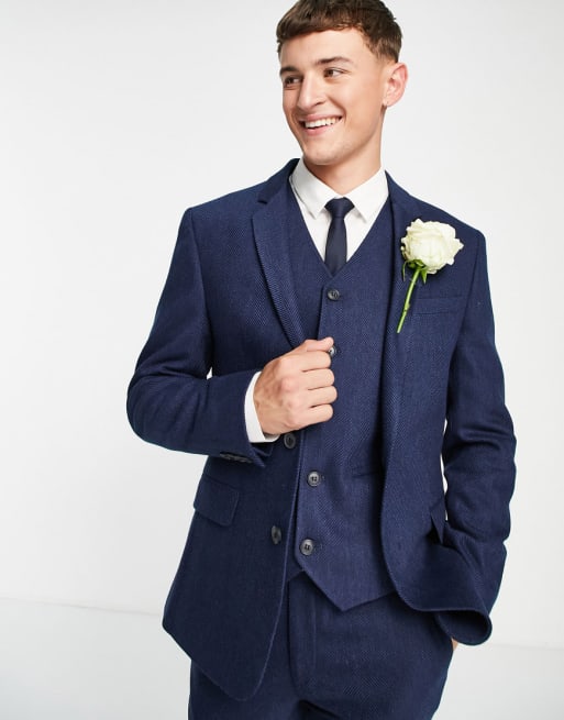 ASOS DESIGN Wedding - Super skinny suit i navy sildebensmønstret uldblanding