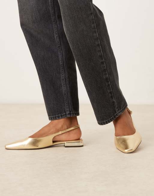 ASOS DESIGN - Wide Fit - Logan - Guldfarvede ballerinasko med slingback