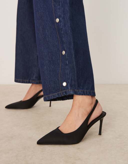 ASOS DESIGN Wide Fit - Spicy - Sorte slingback-sko med mellemhøj stilethæl