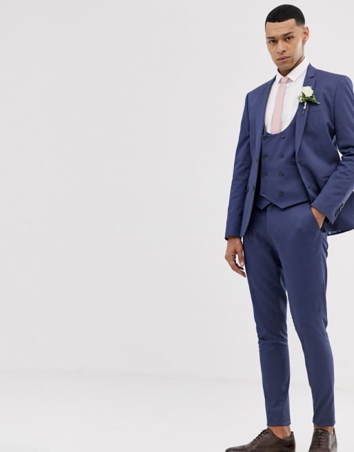 ASOS DESIGN superskinny bryllupshabit i strækbomuld og indigofarve
