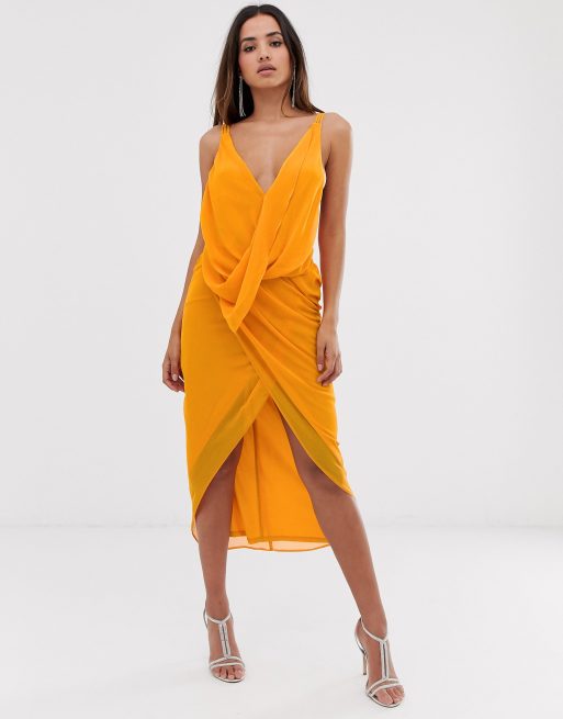 Draperet midikjole med slå-om hals i blødt chiffon fra ASOS DESIGN
