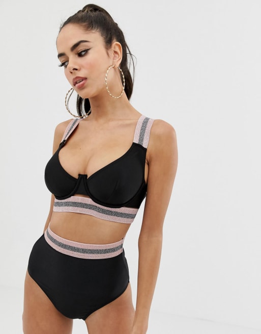 Eksklusiv bikinitop med dyb udskæring, bøjle og elastisk kant fra ASOS DESIGN Større skål