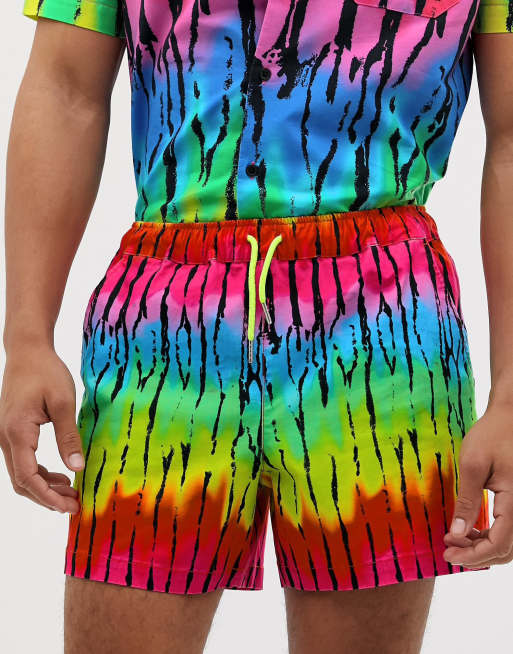 Ekstrakorte shorts som del af et sæt med smal pasform i farverigt tie dye-print fra ASOS DESIGN