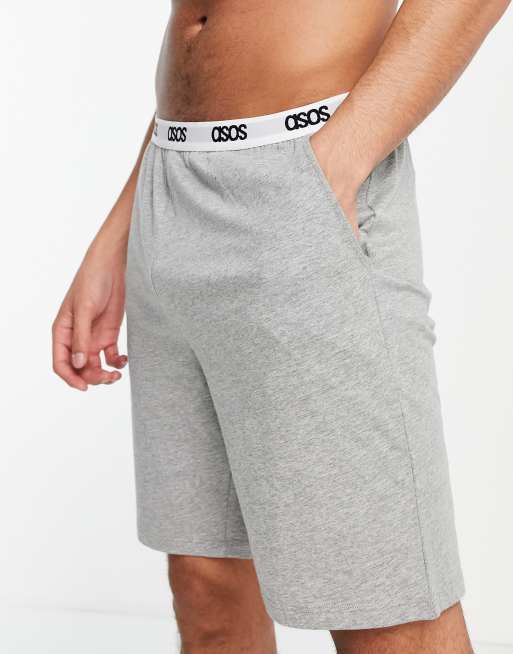 Gråmelerede pyjamasshorts med brandet taljebånd fra ASOS DESIGN