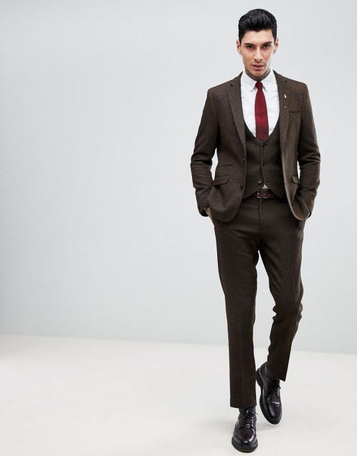 Gyldent jakkesæt i smal pasform og blandet bomuldstwill fra ASOS
