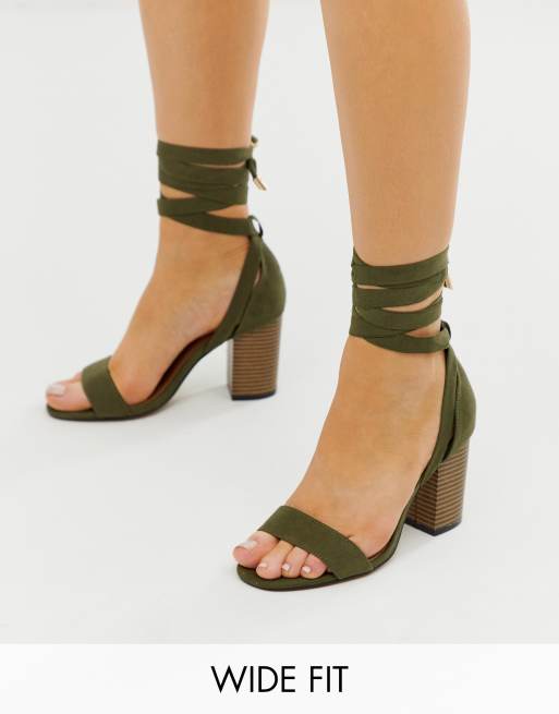 Howling højhælede sandaler med bindebånd om benet i khaki fra ASOS DESIGN Wide Fit