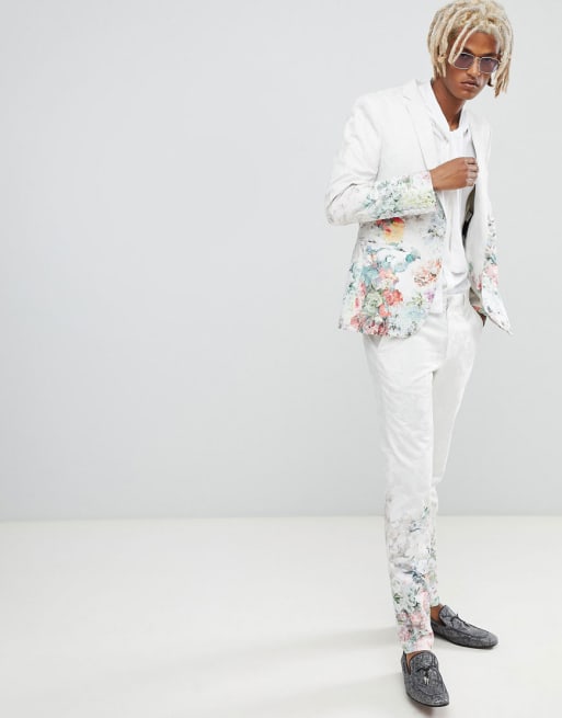 Jakkesæt med smal pasform i blomsterprintet hvid jacquard fra ASOS DESIGN
