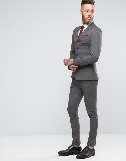 Koksgråt jakkesæt med fire knapper og supersmal pasform fra ASOS