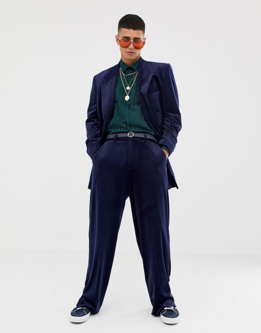 Løstsiddende jakkesæt i navy fløjl fra ASOS DESIGN