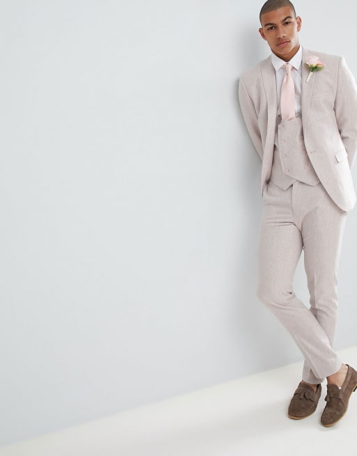 Skinny jakkesæt i pink uldblanding fra ASOS DESIGN Wedding