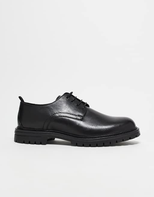 Sko med snører i sort skind med chunky sål fra ASOS DESIGN