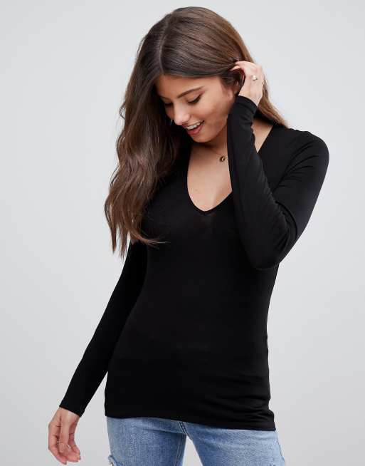 Sort ultimativ top med lange ærmer og v-udskæring fra ASOS DESIGN