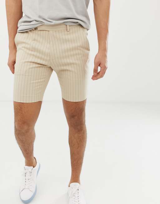 Stone-farvede nålestribede shorts i skinny pasform fra ASOS DESIGN