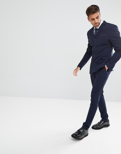 Superskinny navy fireknaps-jakkesæt fra ASOS DESIGN
