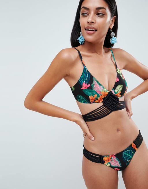 Trekant-bikinisæt med eksotisk bladprint og håndlavet macramé fra ASOS DESIGN
