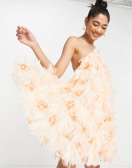 ASOS EDITION - Abrikosfarvet minikjole uden ryg i tekstureret mesh