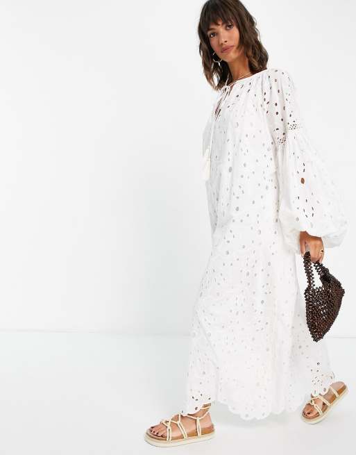ASOS Edition - Broderet maxikjole med blouson-ærmer og bindebånd foran