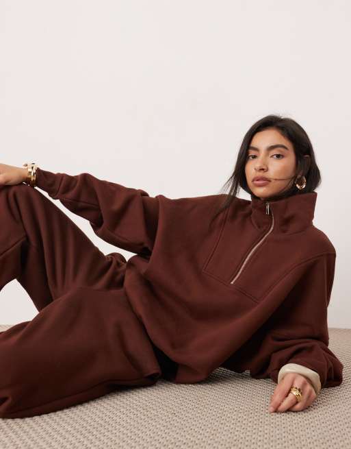 ASOS EDITION - Chokoladebrun premium kraftig oversized sweatshirt