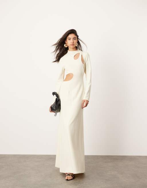 ASOS EDITION - Cremehvid og langærmet maxikjole med udskæring