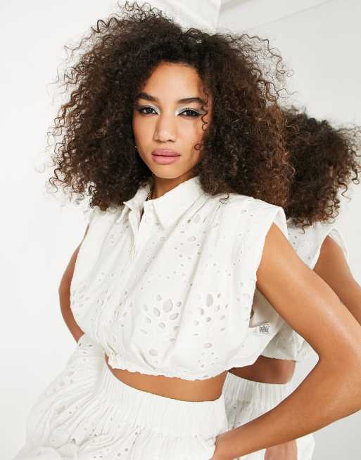 ASOS EDITION - Cropped skjorte med broderier i hvid