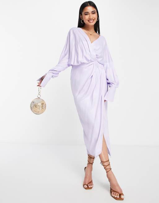 ASOS EDITION - Draperet midikjole med slå-om-kjoleliv og -nederdel i lyslilla satin