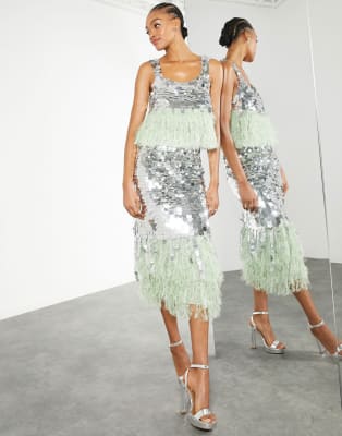 ASOS EDITION - Grønt og sølvfarvet sæt med pailletter