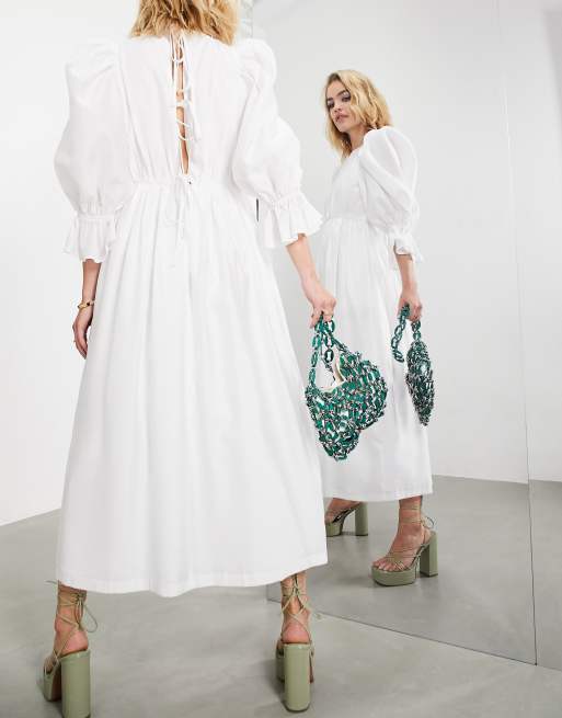 ASOS EDITION - Hvid midikjole med pufærme og bindebånd