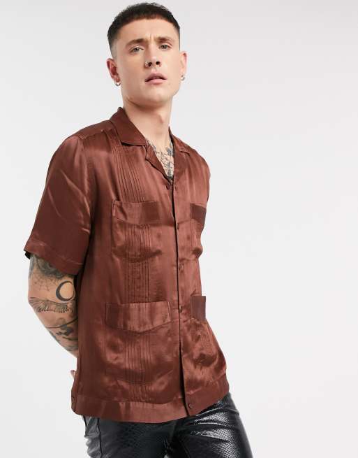ASOS EDITION - Kortærmet skjorte i satin med plisseret detalje og flere lommer