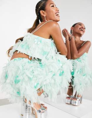 ASOS EDITION - Lysegrøn pencil-midinederdel i mesh med tekstur og pailletter