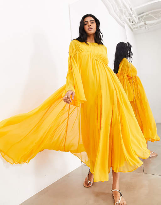ASOS EDITION - Orange maxikjole med lange ærmer og rynkedetaljer i chiffon