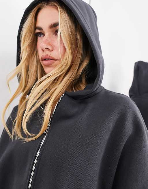 ASOS EDITION - Premium - Kraftig oversized hættetrøje med lynlås i koksgrå