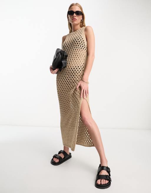 ASOS EDITION - Strikket midikjole uden ærmer med racerfront i kamelbrun