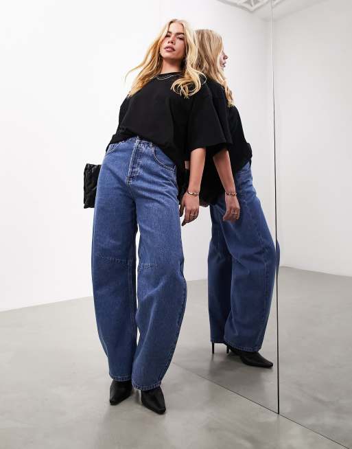 ASOS EDITION - Sydney - Højtaljede blå barrel-jeans