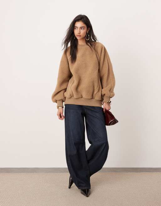 ASOS EDITION - Taupe oversized sweatshirt i imiteret lammeskind
