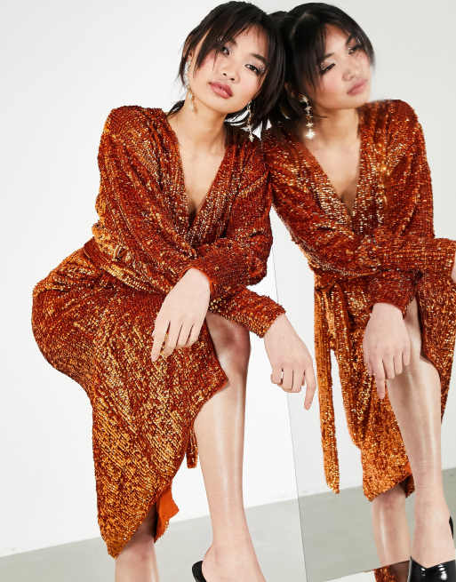 Slå-om midikjole med pailletter fra ASOS EDITION