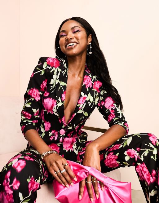 ASOS Luxe - Habitblazer i sort med blomsterprint