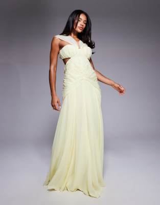 ASOS Luxe - Lysegul maxikjole i chiffon og organza med rynker og halterneck