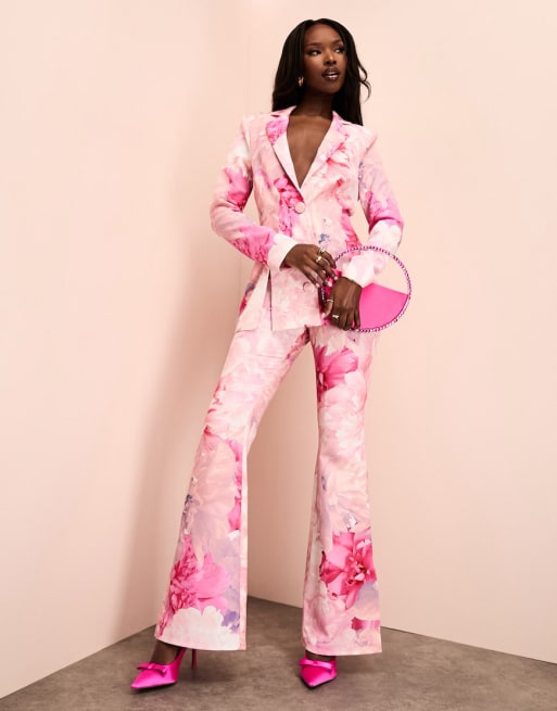 ASOS LUXE - Lyserødt sæt med habitblazer og bukser med blomstermønster