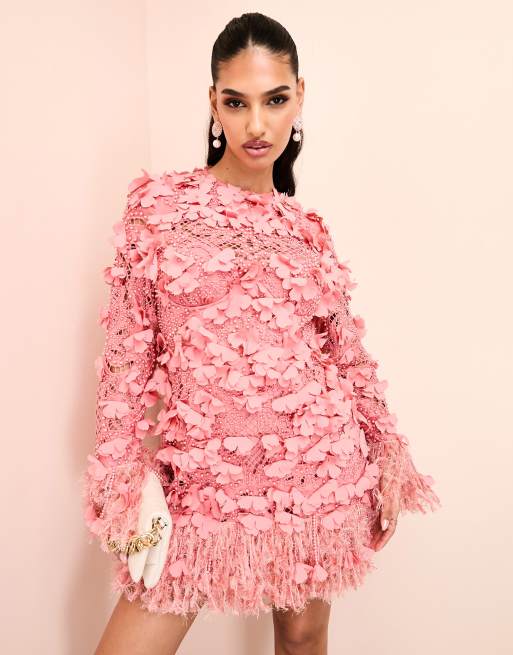 ASOS LUXE - Pink minikjole med 3D-blomsterdetaljer og udsmykning i imiterede fjer