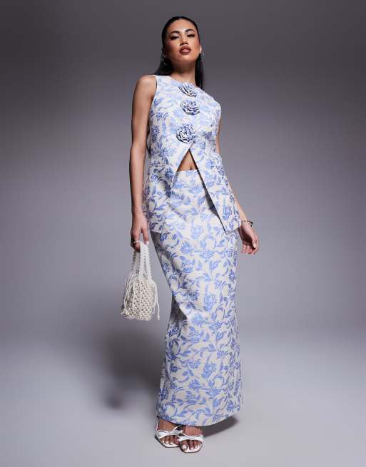 ASOS LUXE - Skræddersyet maxinederdel med slids bagpå og tapet-blomstermønster i jacquard - Del af sæt
