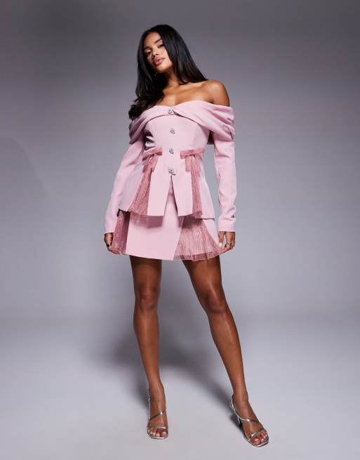 ASOS LUXE - Skræddersyet mininederdel i støvet lyserød med organza-plisseringer - Del af sæt