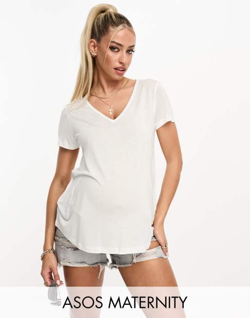 ASOS DESIGN Maternity - Hvid afslappet T-shirt med V-hals
