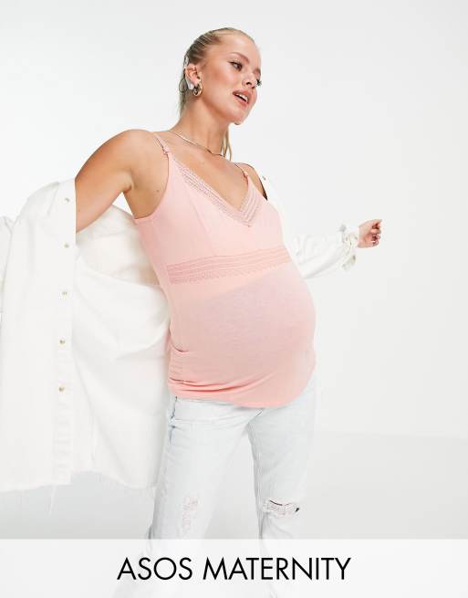 ASOS DESIGN Maternity - Koralrød amme-cami med blondedetaljer