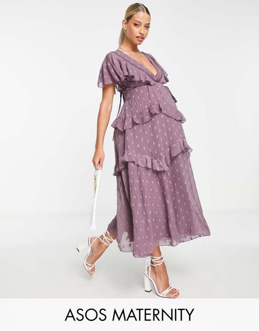 ASOS DESIGN Maternity - Lilla lagdelt midikjole med blondeindsatser og åben ryg i dobby