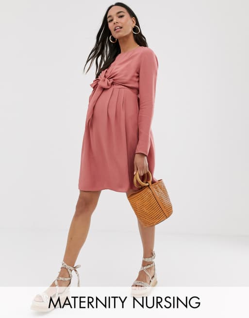 ASOS DESIGN Maternity - Lyserød mini-ammekjole med slå-om og lange ærmer