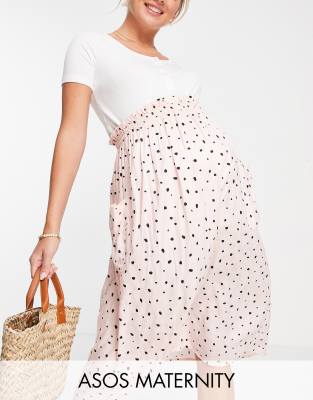 ASOS DESIGN Maternity - Midinederdel med lommedetalje og prikker