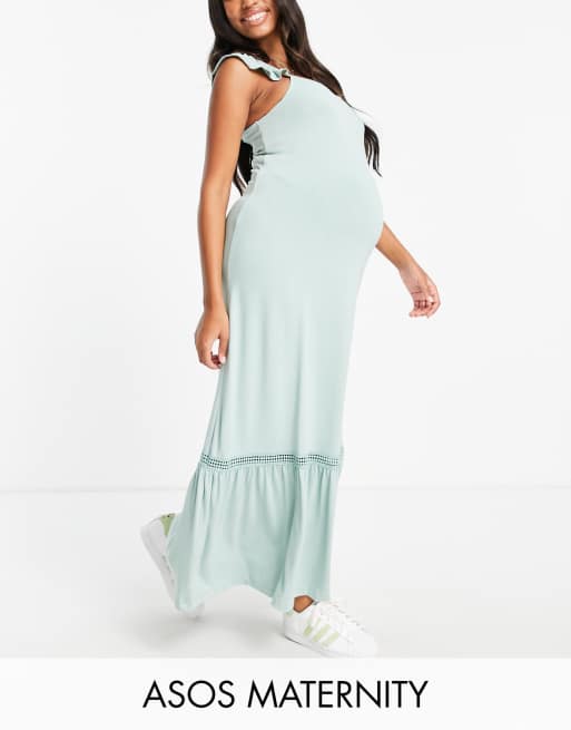 ASOS DESIGN Maternity - Salviegrøn maxi-sundressmed flæseærmer og blondeindsatser