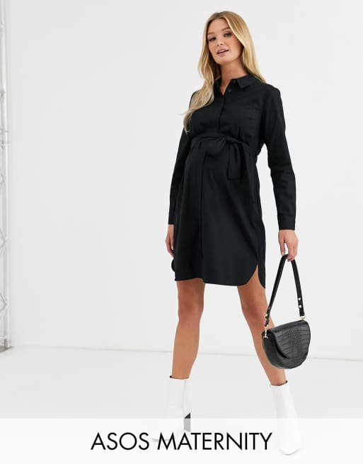 ASOS DESIGN Maternity - Sort mini-skjortekjole i bomuld med bindebælte