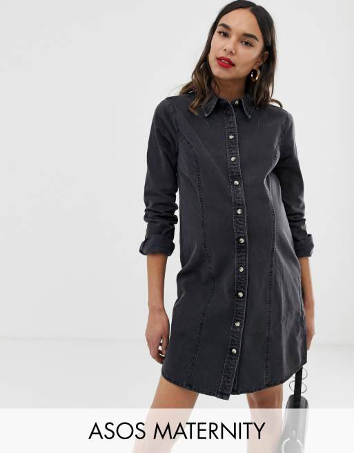 Sortvasket figursyet western-skjortekjole i denim fra ASOS DESIGN Maternity