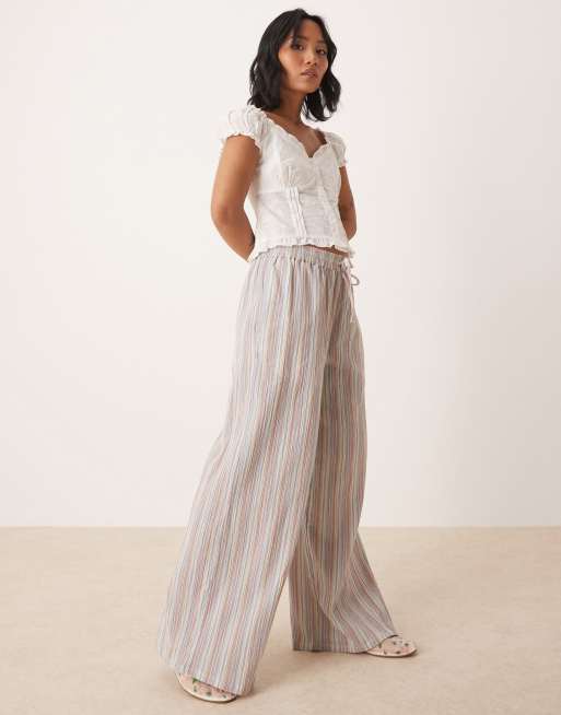 ASOS DESIGN Petite - Bukser i hørlook med multifarvede striber, tekstur og brede ben